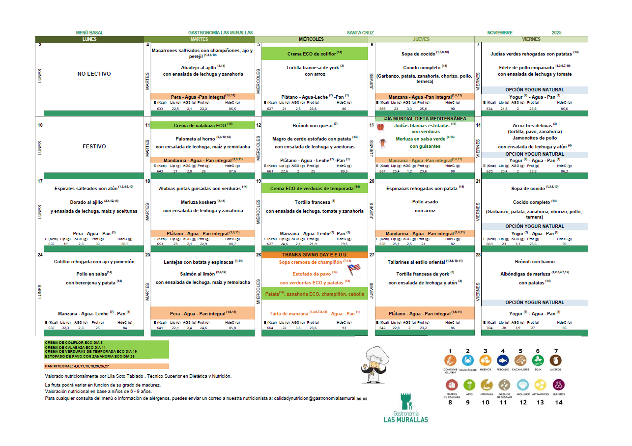 Consulta o descarga nuestros menús y menús especiales de comedor.